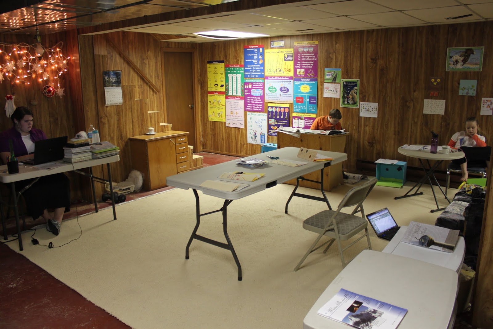 :: our school room in the basement... it's great to finally have a room big enough to all do school together in the same place ::